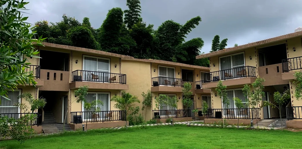 Bhil’s Kabeela is a luxury resort & spa that is located close to the wild Kanha National Park. This resort offers comfortable accommodation options that provide a luxurious experience. The resort features staying options such as Banjar Villa, Kanhar Villa, Ghanghar Villa, Tanor Villa, Premium Kabeela Room, and Kabeela Room. All the rooms come with modern amenities like a bed, table, chairs, TV, AC, attached bathroom, and many more to make your experience comfortable. While staying, you can have delicious meals at the restaurant, which provides authentic Indian and international dishes prepared by skilled chefs. While staying, people can enjoy the yoga sessions, play outdoor games like Cricket, Badminton, Swings, Football, Kite Flying, etc. And, there is even an indoor games area which offers a range of games like Carrom, Chess, Xbox, and Table Tennis. If you want to enjoy a relaxing vacation, then you can take a massage at the spa or simply rent bicycles on rent and explore the area on your own. This is truly a luxurious resort that provides everything needed for a perfect holiday.